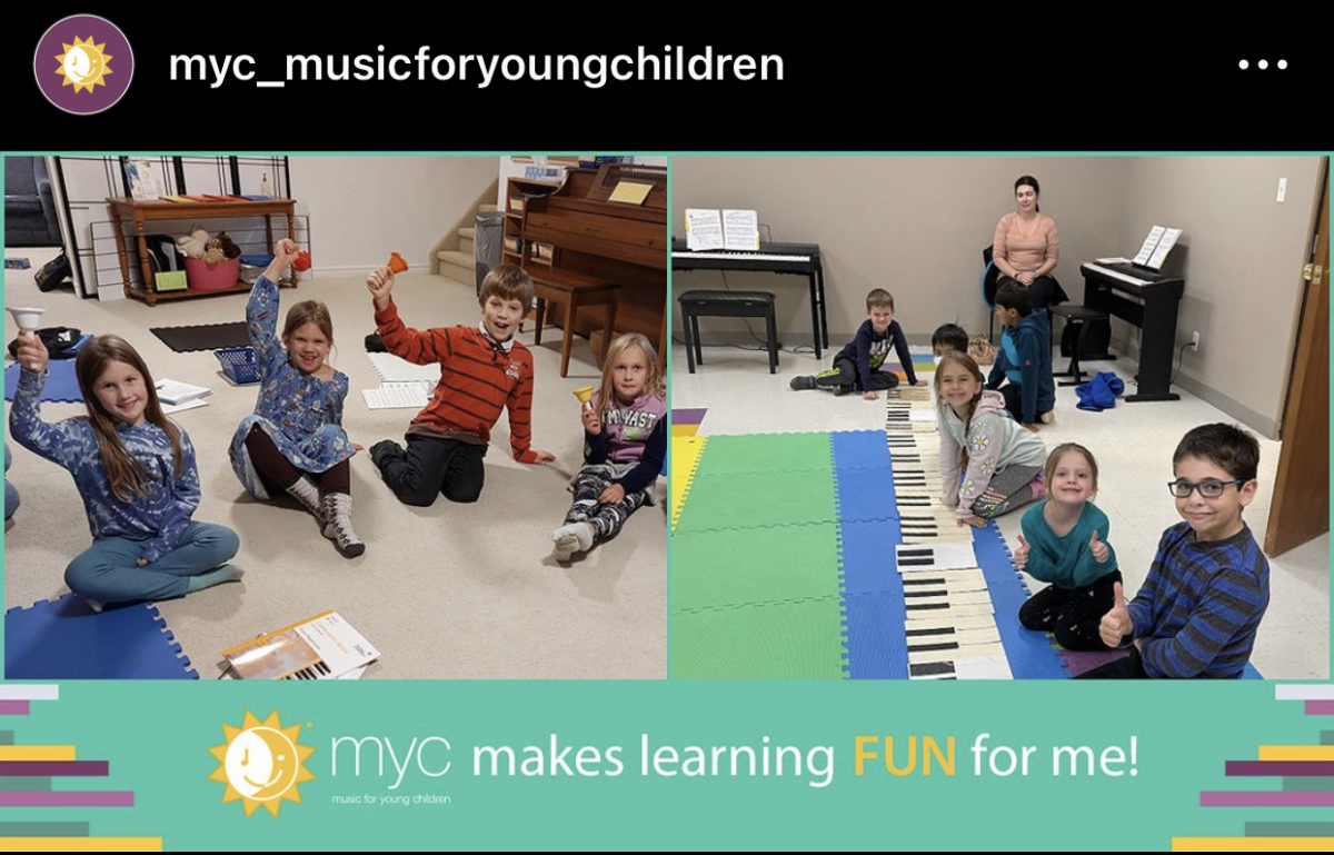 MYC là tên viết tắt của chương trình giảng dạy âm nhạc Muisc for Young Children, một hệ thống chương trình từ giảng dạy cảm thụ âm nhạc cho lứa tuổi mẫu giáo cho đến chương trình dạy học Piano cơ bản đến nâng cao dành cho trẻ phân chia cụ thể theo từng lứa tuổi. Với chương trình học này trẻ có thể trải nghiệm vận động cơ thể qua nhịp phách, tiết tấu cũng như hoàn thiện kĩnăng điều khiển phím đàn qua việc diễn tấu nhạc cụ.