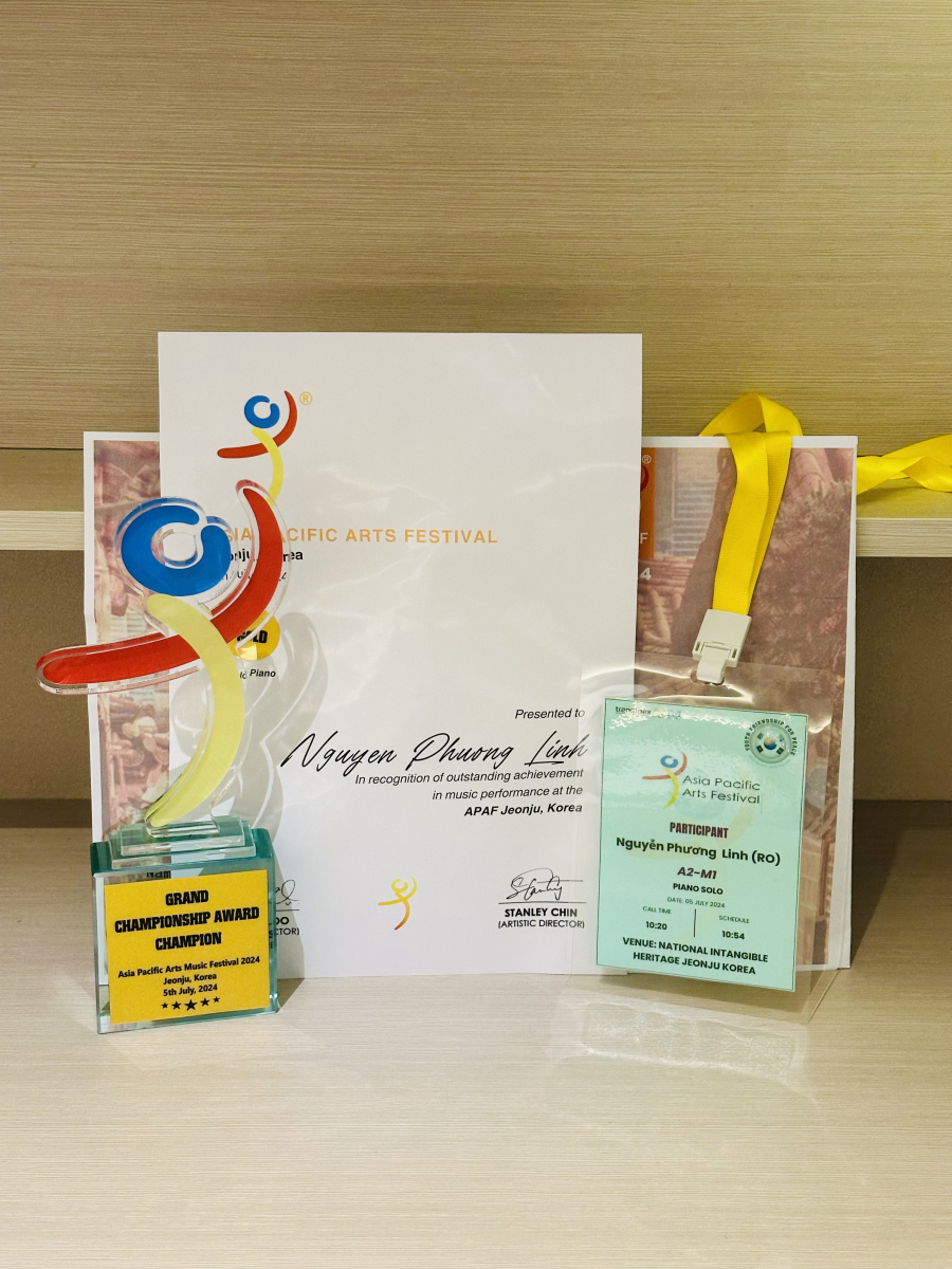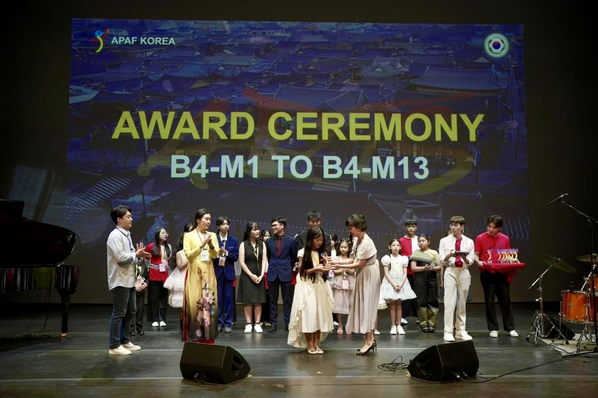 Tham gia cuộc thi Festival năm nay, đoàn học sinh MYC Việt Nam lần đầu tiên giành giải Quán Quân Champion của lễ hội 2024. Cùng với 5 Giải Vàng và 4 Giải Bạc. Chương trình diễn ra từ 4/7/2024 - 8/8/2024 bên cạnh giải thi là nhiều hoạt động giao lưu kết nối, tìm hiểu về văn hoá các nước. APAF là một sự kiện uy tín ra đời từ năm 2017 với slogan “ Dream, Plan , Do”, với sự tham gia của nhiều nước trên toàn thế giới nhằm lan toả, nuôi dưỡng cũng như phát huy tình yêu về âm nhạc nói riêng và nghệ thuật nói chung đến thế hệ trẻ. Cô Chử Hải Ly đại diện của MYC Việt Nam được APAF mời là một trong bốn giám khảo của phần thi âm nhạc. Chương trình được diễn ra tại thành phố văn hoá Jeonju và thủ đô Seoul, Hàn Quốc.